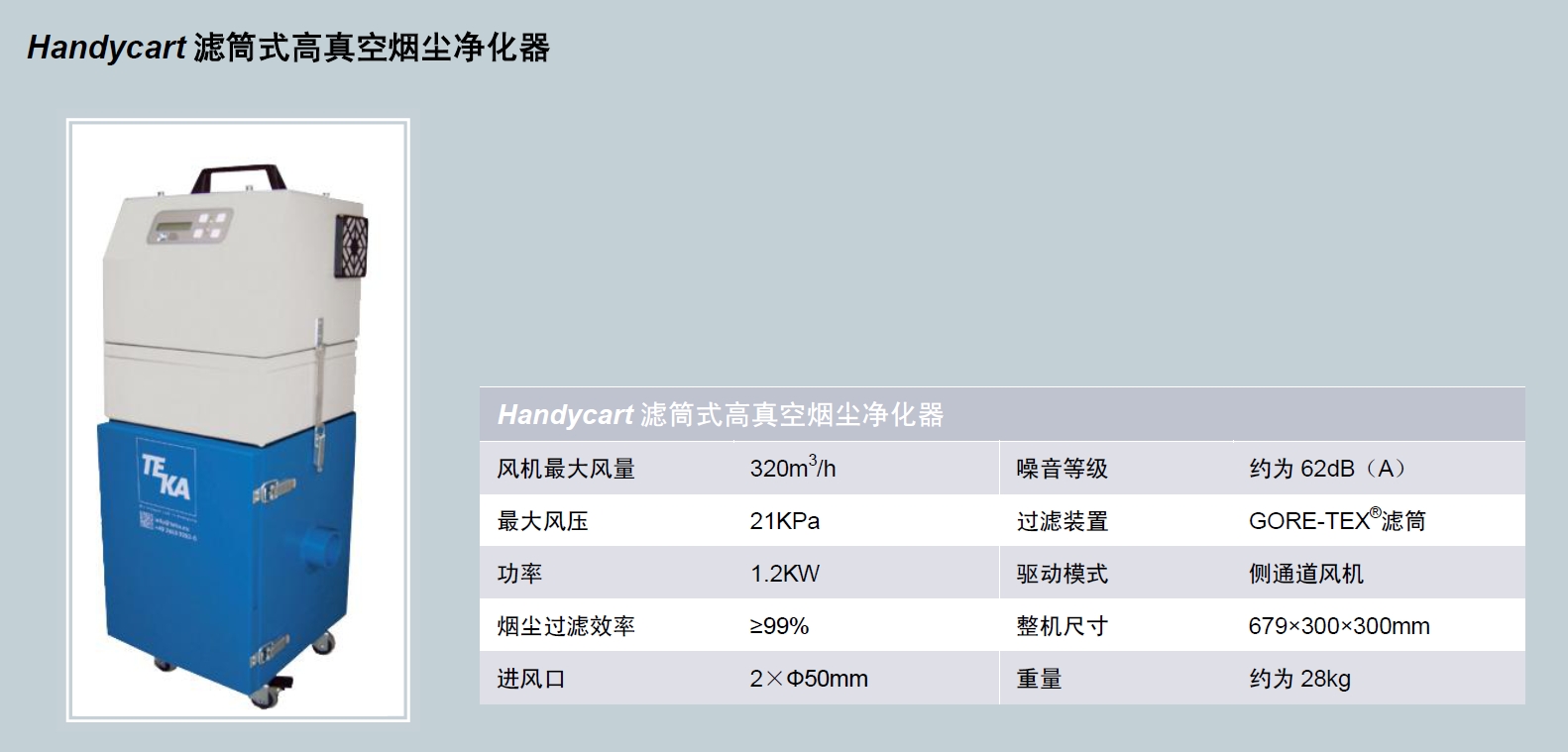 內(nèi)部采用高品質(zhì)濾筒過濾煙塵,濾筒由GORE-TEX(薄膜狀態(tài)下的PTFE)面料制作,防水,透氣性好,柔軟堅(jiān)韌,煙塵過濾效率可達(dá)99%以上。